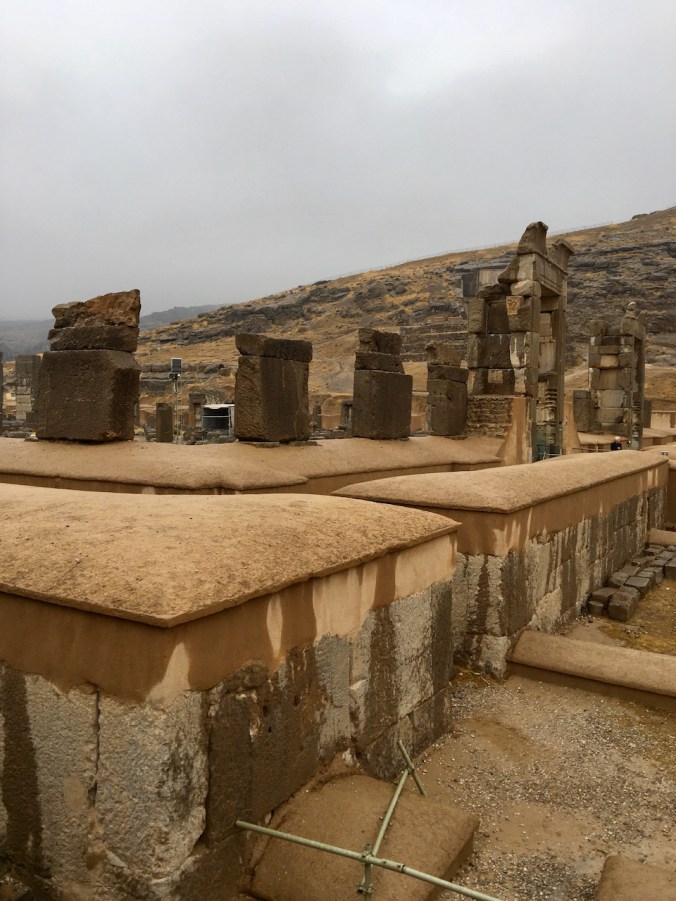 Because of the weather, we did not walk around the entire site, but did pay the additional entrance fee to visit the museum. Its construction incorporated some of the original masonry of the building thought to be the Harem of Xerxes. Modern reconstruction of the columned courtyard helped give us the feel of what it would have been like to actually be inside a palace. Although the museum’s holdings are not extensive, we felt it was very much worth visiting just to get the feel of an ancient Persian building.
