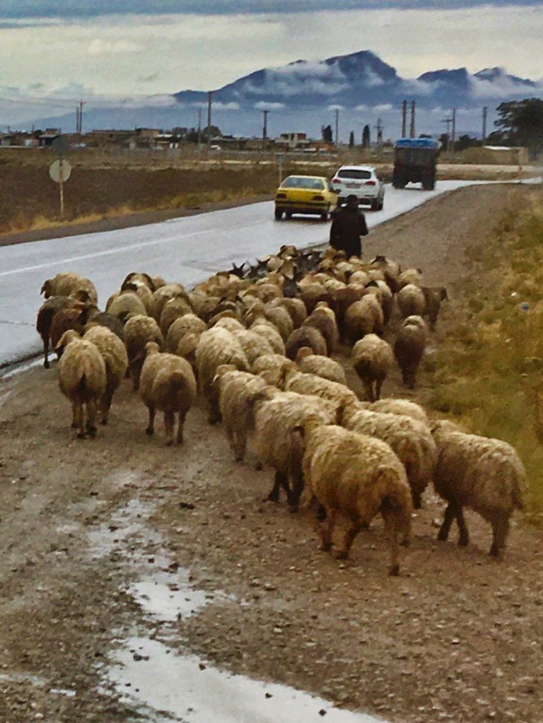 Shortly before we left the site, Suzan got out of the bus to take a closer look at two flocks of sheep which were being herded just beyond the fence around the archaeological site. Each sheep had a bell around its neck, which made a lovely sound.