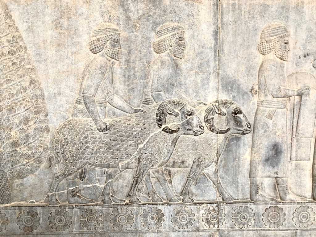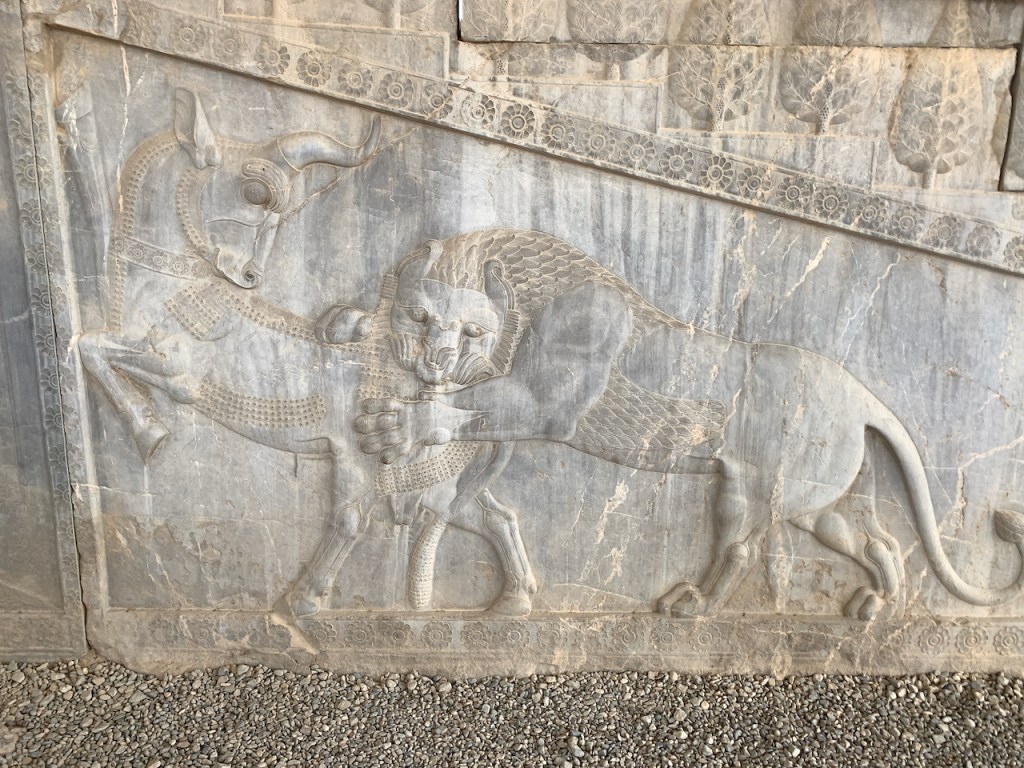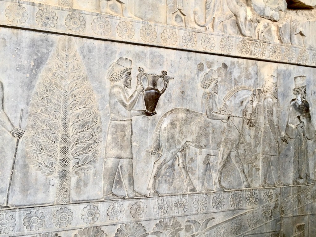 We walked up a grand staircase and through the Gate of All Nations to the level where most of the palaces were located. On one side of the Apadana Palace there is a long frieze of relief sculptures, and Vahid did an excellent job of explaining to us what various elements of the frieze signified.