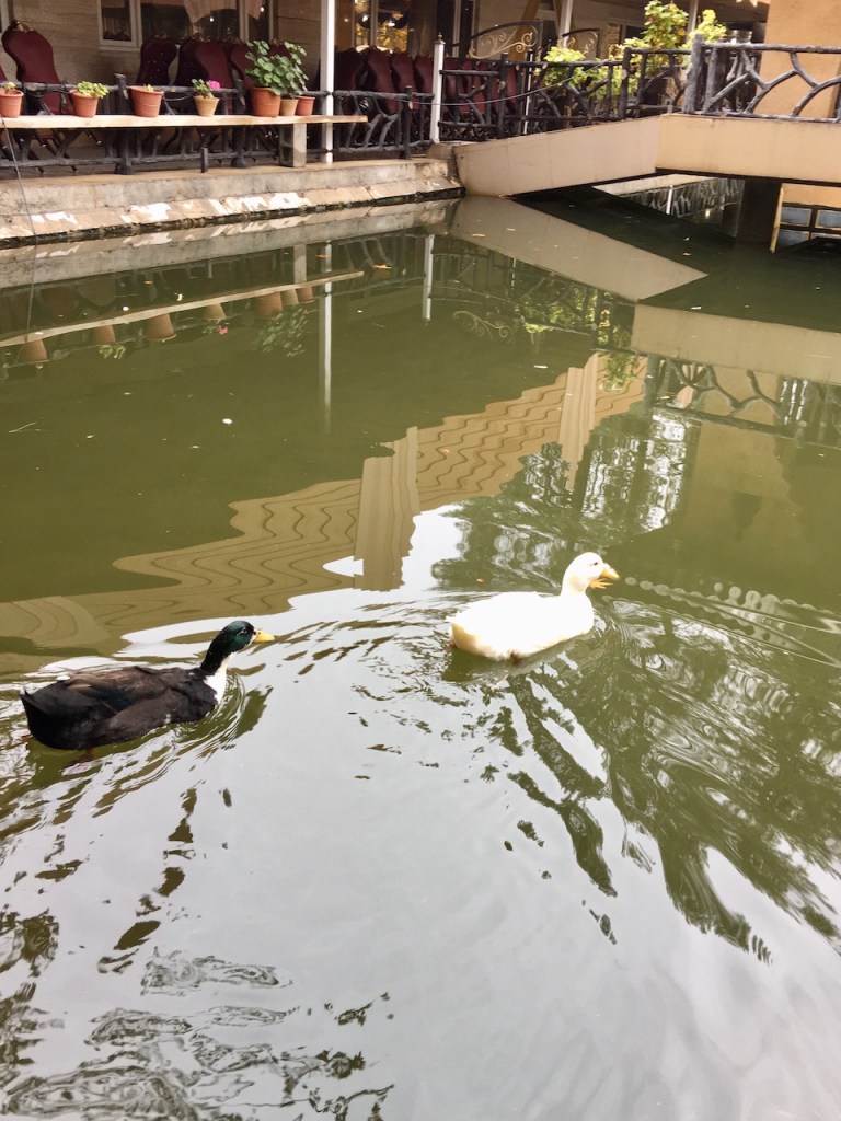 We stopped for lunch, buffet-style, just a few miles from Naqsh-e Rostam. The restaurant included a large pond with several ducks. Water features like this are common in public places in Iran.