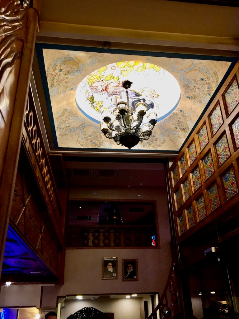Around 7pm six of us (plus Nate, Philippa, and Vahid) walked to Cafe Ferdowsi on Ferdowsi Street, which Nate said is his favorite cafe in all of Iran. (Ferdowsi was a famous Persian poet who lived about a thousand years ago and whose epic poem The Shahnameh is the longest poem ever written by a single author.) Like everything else we ate in Iran, the meal here tasted very good.