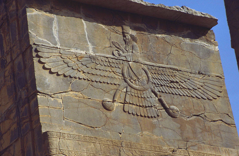 Relief scultpure of Ahura Mazda from Persepolis. Source: https://commons.wikimedia.org/wiki/File:AhuraMazda-Relief.jpg