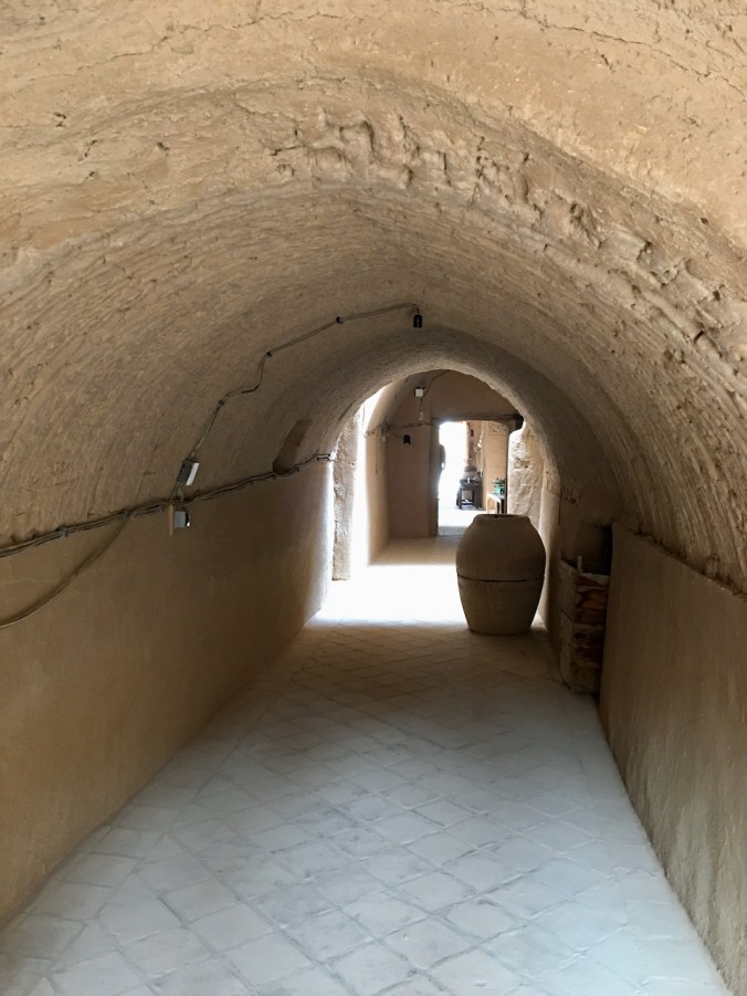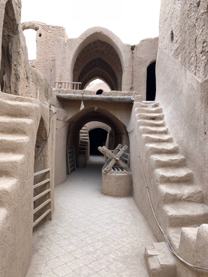 Leaving Taft, we backtracked towards Yazd and then headed east. Our destination was the Sar Yazd Fortress, which was built during the Sassanian Dynasty (3rd-7th centuries A.D.) Its purpose was to serve as a safe treasury house where people could store gold and other valuables in times of danger. The narrow, labyrinthine passageways would surely have made it a challenge to any attackers.