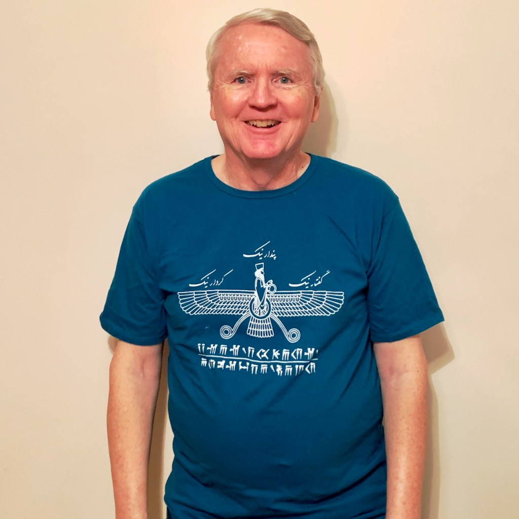 The name of God in Zoroastrianism is Ahuramazda. Tim was wearing the Zoroastrian t-shirt he’d bought in Esfahan as an undershirt. He displayed it to everyone, which made for a good laugh. Our host explained that this symbol was originally the symbol of the Achaemenian Empire (ancient Persia) and had been adopted by Zoroastrians several hundred years ago.