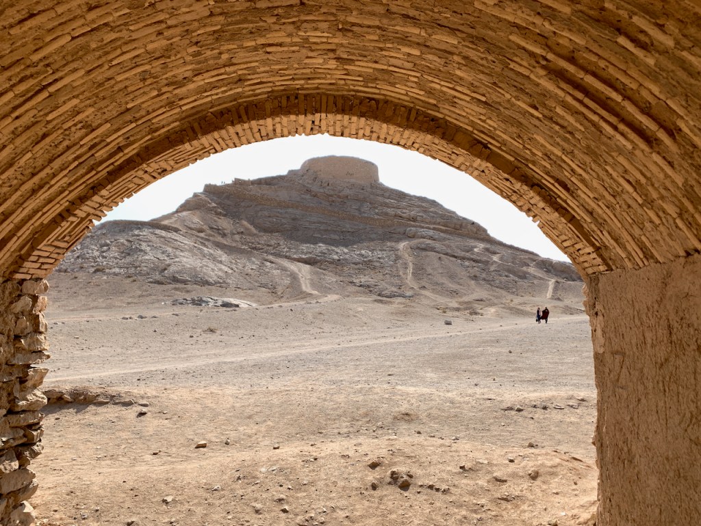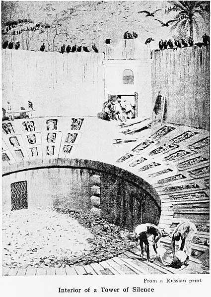 When the towers were in use, the corpses would be carried to the tops of the towers, where there were three concentric circles inside a stone enclosure. Children’s corpses were placed in the innermost circle, then women, and finally men. Their bodies would be left open to the elements, and vultures would come and pick the bones clean, after which the bones would be deposited in the center of the circle. Eventually the bones would decompose into dust.