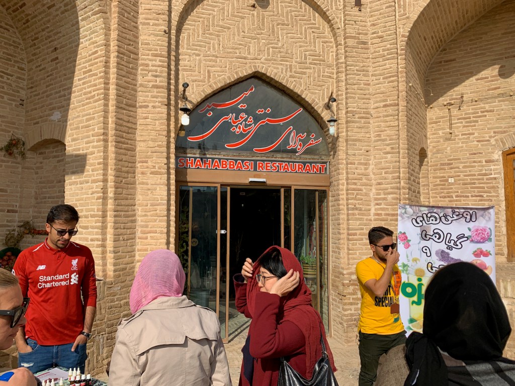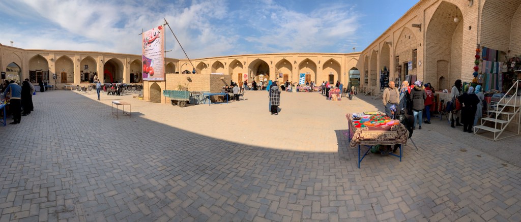 We made a lunch stop in the historic city of Meybod. Lunch itself was in a restaurant which occupied all of one inside passage of what had once been a caravanserai. Outside in the central courtyard we witnessed part of a pomegranate festival. Suzan bought a small jar of pomegranate cream from one of the vendors in the square; this was a perfect remedy for skin dried out by the dry climate. In the middle of the square there was a well where camels would once have been able to quench their thirst and people could replenish their own water supply for the next part of their journey.
