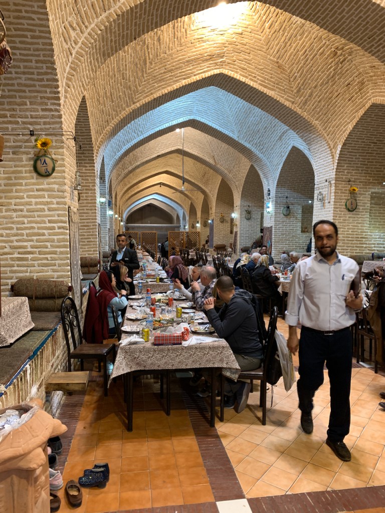 We continued on into Yazd and checked into the Dad Hotel. Internet service was spotty, at best. Suzan rested in the hotel room while Tim went out with some of the others in the group to a nearby restaurant, where he had a camel burger(!) with fries for dinner. The group walked back to the hotel through part of the bazaar; most of the shops were closed because of the lateness of the hour.