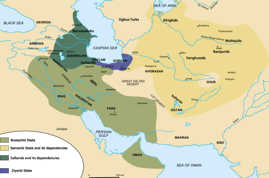 Area of Iran ca. 1000 CE. Note the number of separate Iranian kingdoms.